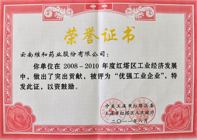 在2008年-2010年紅塔區(qū)工業(yè)經(jīng)濟(jì)發(fā)展中被評(píng)為“優(yōu)強(qiáng)工業(yè)企業(yè)”