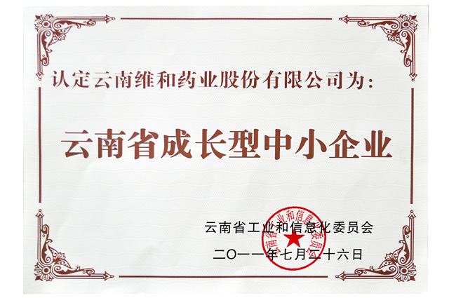 云南省工業(yè)和信息委員會(huì)認(rèn)定為云南省成長(zhǎng)型...