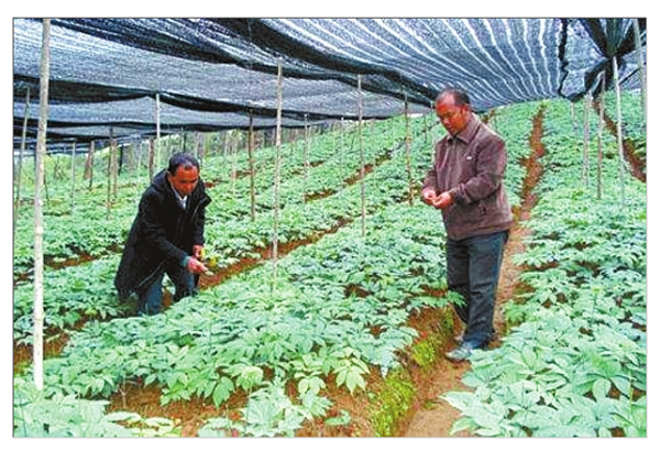 從2011年開始,維和藥業(yè)擴(kuò)大種植規(guī)模、規(guī)范種植基地,引導(dǎo)農(nóng)戶進(jìn)入產(chǎn)業(yè)鏈,吸納農(nóng)戶管理三七種植棚,并讓企業(yè)種植技術(shù)人員向農(nóng)民傳授種植技術(shù),借助政府提供的經(jīng)濟(jì)林木果權(quán)證抵押貸款,農(nóng)民開始用自己承包的林地種植三七。
