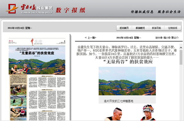 編者按:12月14日云南日報(bào)對維和無量藥谷進(jìn)行了整版報(bào)道,全文如下——